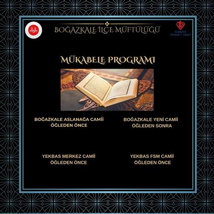 Boğazkale İlçe Müftülüğümüz bünyesinde 2026 yılı Ramazan ayı boyunca Camilerimizde mukabele programları icra edilecektir. Tüm halkımız davetlidir.