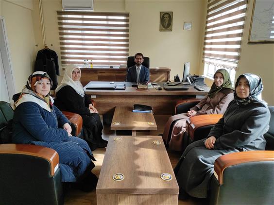 Aile ve Dini Rehberlik Bürosu faaliyetlerini değerlendirmek üzere Müftülüğümüze gelen İl Müftü Yardımcımız Özlem KALYONCU ŞİRİN, İl ADRB Koordinatörü/ADRB Vaizi Gülay KUNDURACI ve TDV Kadın Kollari Sorumlusu Nurdane BOYRAZ, toplantı öncesi İlçe Müftümüz Ferhat KOÇAK'ı ziyaret etti.