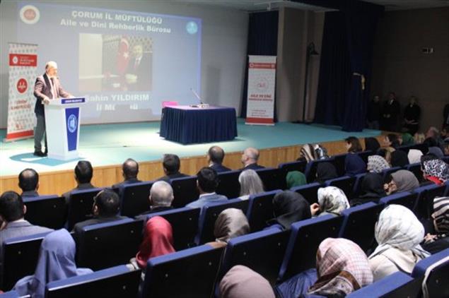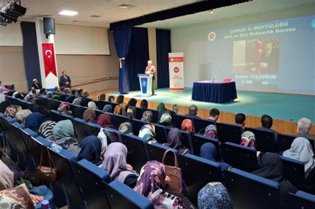 Diyanet İşleri Başkanlığı koordinesinde Çorum İl Müftülüğü Aile ve Dini Rehberlik Bürosu (ADRB) ve TDV Kadın Kolları tarafından "Aile Yılı" ve "Kadına Yönelik Şiddetle Mücadele Günü" kapsamında “Ailede Merhamet Eksenli Hak Ve Sorumluluk İkilemi” konulu konferans programı düzenlendi.