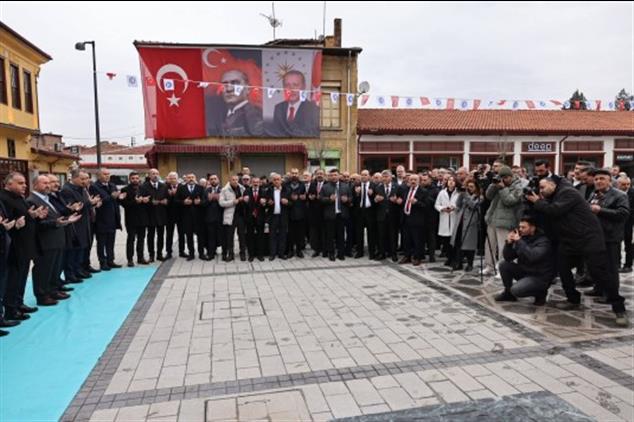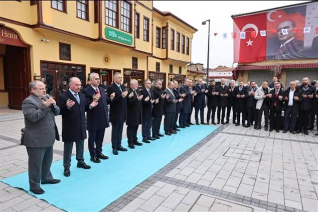 Çorum'da il protokolü ve vatandaşlar bayramlaşma için tarihi Veli Paşa Han'ın önünde bir araya geldi.