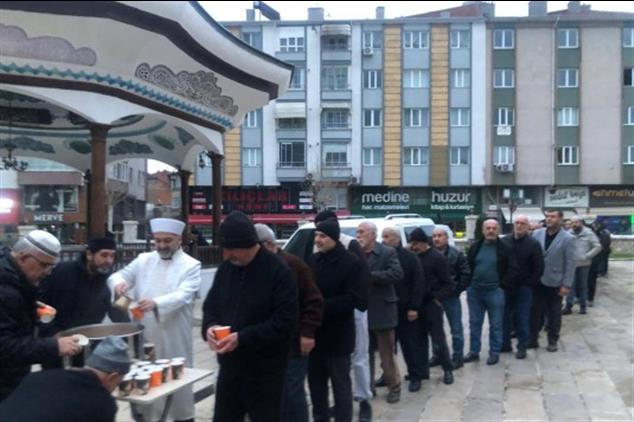Cami çıkışında cemaate çorba ikram edilirken İl Müftümüz de dua etti.