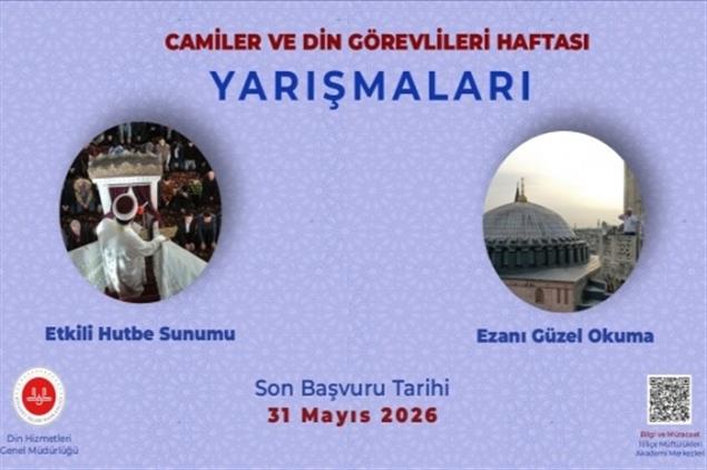 1-7 Ekim Camiler ve Din Görevlileri Haftası münasebetiyle imam-hatip, müezzin-kayyım ve Kur’an kursu öğreticilere yönelik düzenlenecek olan Ezanı Güzel Okuma ve Etkili Hutbe Sunumu Yarışmalarına başvurular başladı.