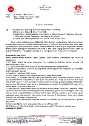 2025 yılı Erkek Hafızlık Kur'an Kursu Geçici Öğretici Sınav Müracaatları Başladı