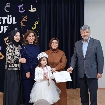 Programda konuşan İlçe Müftümüz: Diyanet İşleri Başkanlığı olarak 4-6 Yaş Kur'an Kurslarına büyük önem verdiğimizi hatırlatarak milli ve manevi değerlerine bağlı bir neslin yetişmesinde küçük yaşta eğitimin önemine vurgu yaptı. Emeklerinden dolayı Hocamız Zeynep Şüheda Kış'a okul yönetimine ve velilerimize teşekkür etti. Programda minik öğrenciler ilahi söylediler. Kur'an-ı Kerim harflerini bitiren öğrenciler ailelerine gurur ve duygu dolu anlar yaşattı.