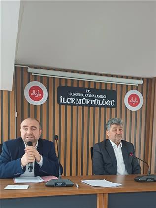 Toplantı İlçe Müftümüz Süleyman EROĞLU'nun başkanlığında, Müftülüğümüz Şube Müdürü Hidayet TÜRKEL, Daire Personelimiz ve Din Görevlilerimiz katıldı.
