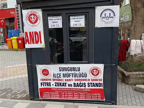İlçe Müftülüğümüz ve Türkiye Diyanet Vakfı Sungurlu Şubesi tarafından, Ramazan ayı boyunca hayırseverlerin zekât, fitre ve bağışlarını kabul etmek amacıyla stant açıldı.